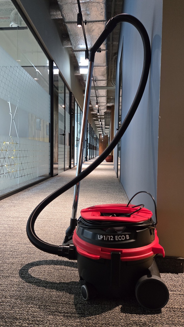 Jest to profesjonalny odkurzacz do użycia na sucho, jest on łatwy w użyciu oraz ergonomiczny dzięki zastosowaniu praktycznego uchwytu ze szpulą na kabel oraz wyciszonymi kołami.