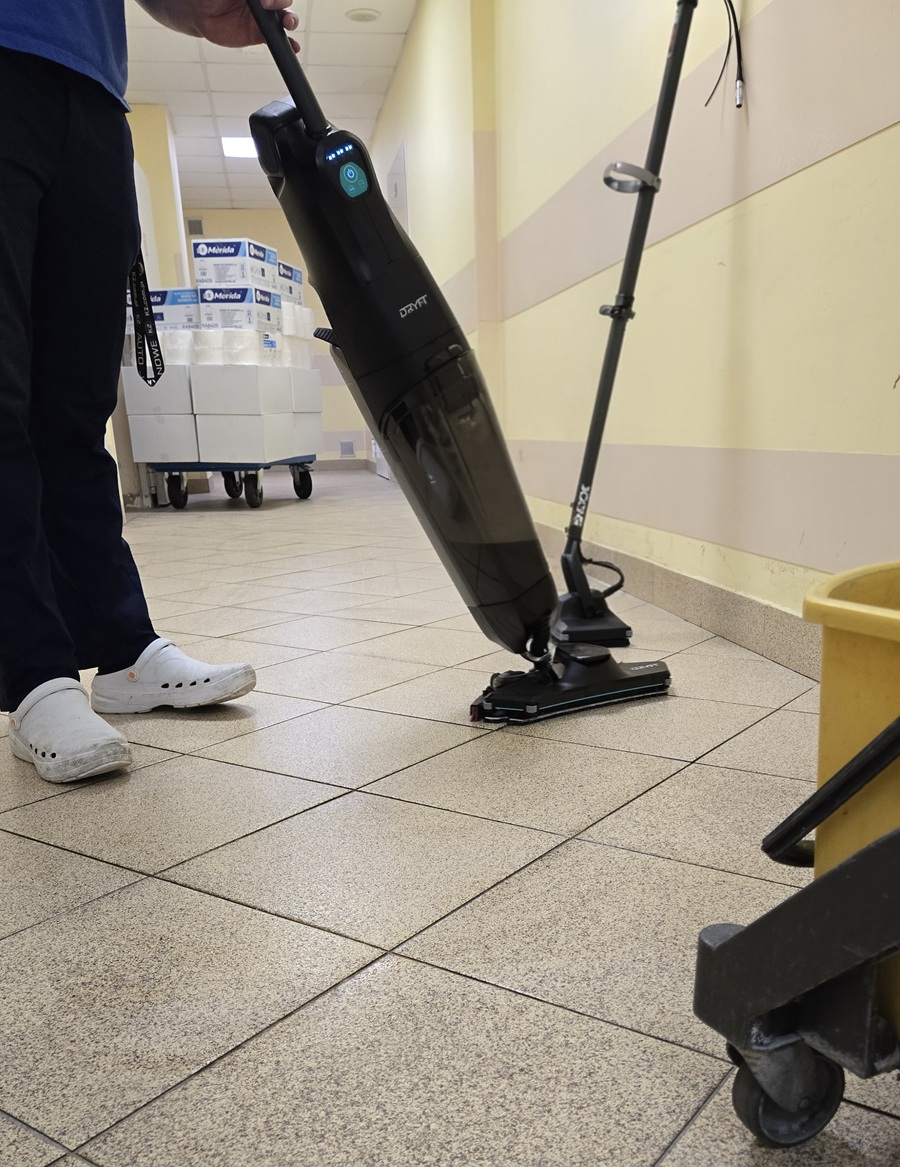 Idealna do czyszczenia pomieszczeń które mają otwarte centralne obszary i niewygodne, trudno dostępne miejsca. Bez wysiłku porusza się w narożnikach, wzdłuż krawędzi i w trudnych przestrzeniach, takich jak pod przegrodami.
