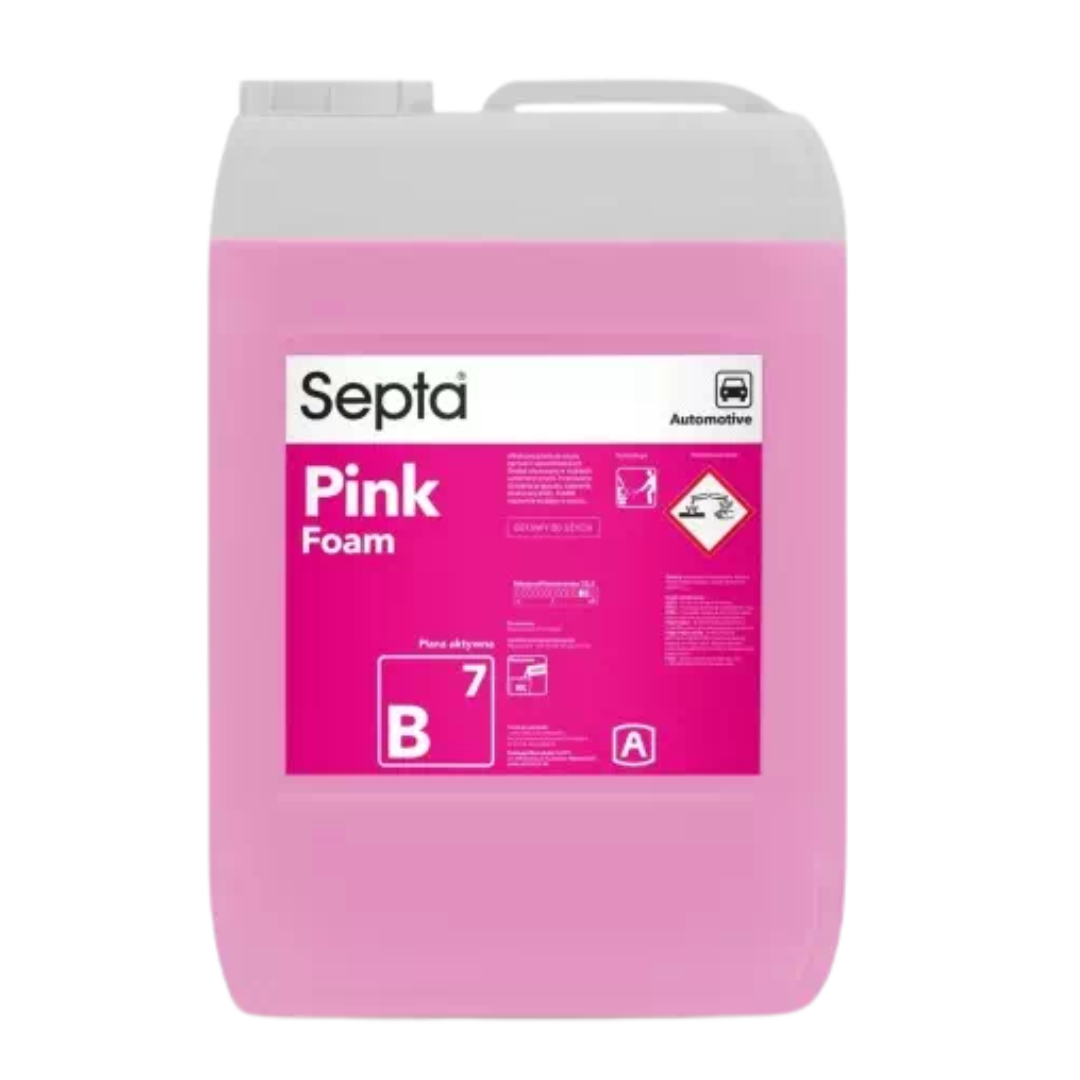 Septa Pink Foam B7 to aktywna piana wysokiej jakości do kompleksowego czyszczenia wszelkich pojazdów — od samochodów osobowych po ciężarówki i powierzchnie plandekowe. Idealny do aplikacji na powłoki lakiernicze, elementy z aluminium oraz stali nierdzewnej. Zapewnia ochronną powłokę nadającą połysk. Doskonale sprawdza się w systemach wysokociśnieniowych bez konieczności kontaktu fizycznego. Produkt dedykowany do zastosowań w samoobsługowych punktach mycia pojazdów.