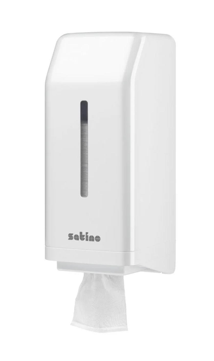 Dozownik BT1 do pojedynczych arkuszy papieru toaletowego, rekomendowany do zastosowań w przestrzeni publicznej, zwłaszcza do toalet dla osób niepełnosprawnych.